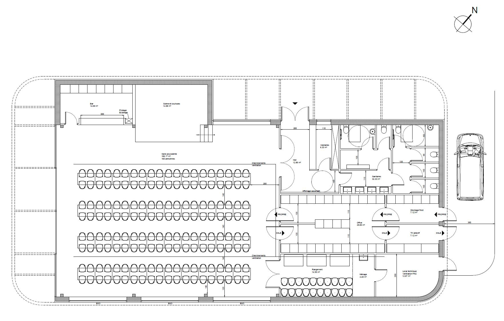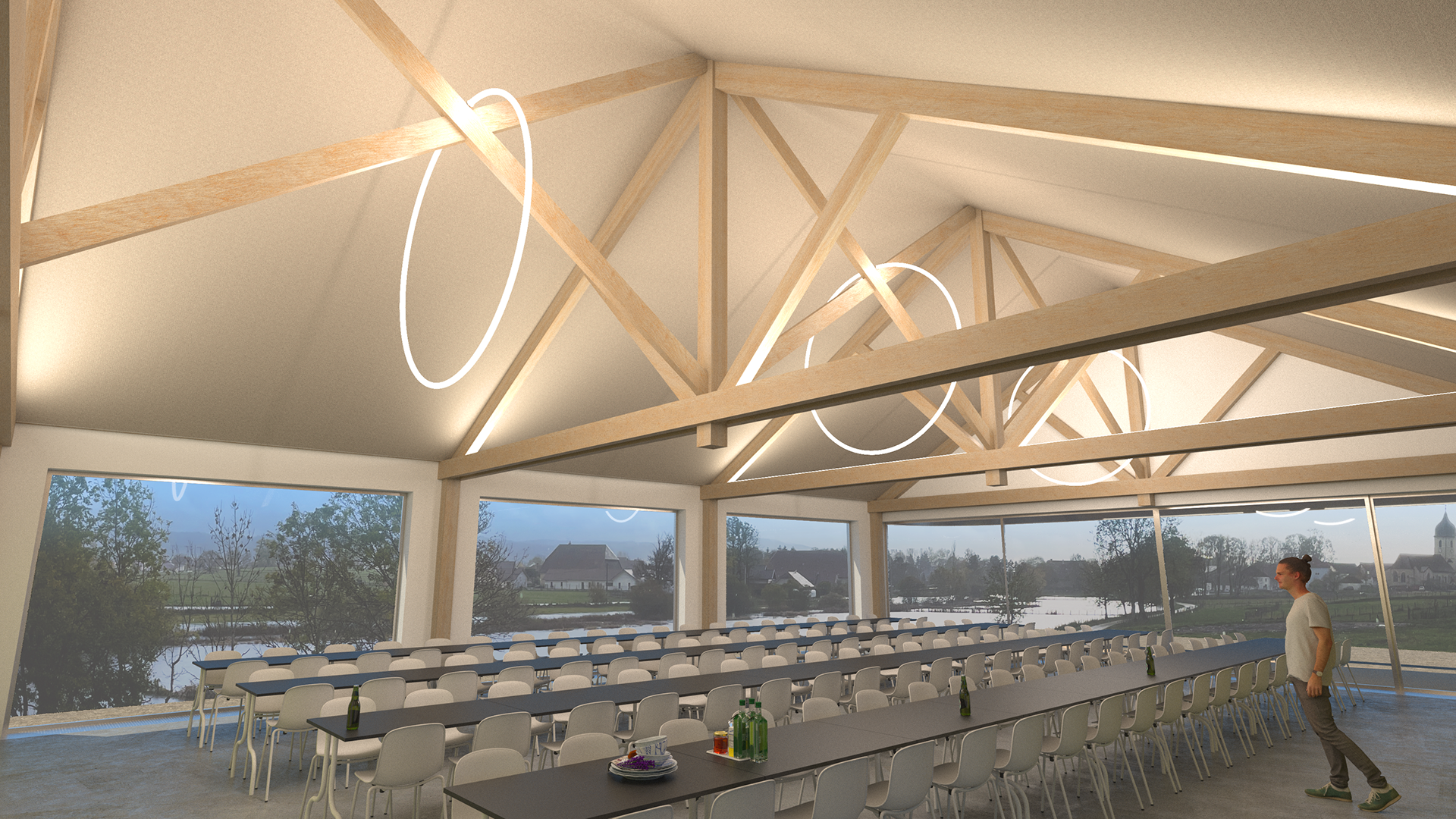 Mission complète pour la réhabilitation complète de la salle des fêtes "Le Terrier" à Dommartin (25). APD en cours Economie : Broissiat-Dequeker - Fluides : Lazzarotto - Structure : CVF Maîtrise d'Ouvrage : Commune de Dommartin
