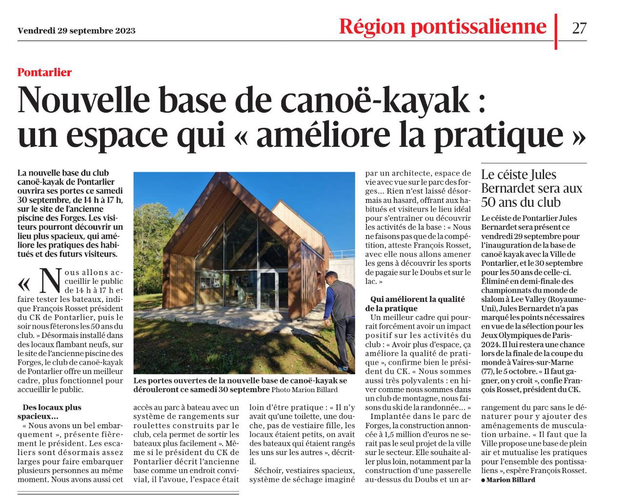 L'Est Républicain - Edition de Besançon du 29.09.2023